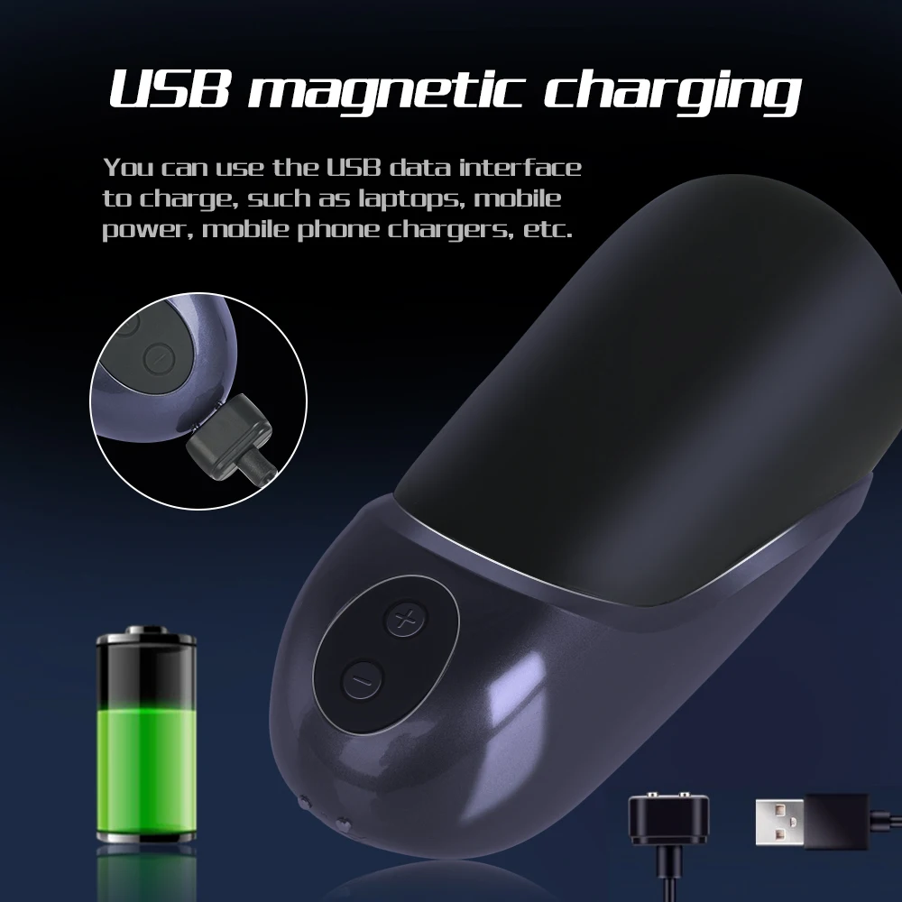 * We promise : you will get 100% same as below picture products. * All of our products are made by FDA approved medical grade body-safe silicone. * Discreet package to protect your privacy. Description This is a new design masturbation cup for men, with special cavity structure similar to women' mouth and deep throat. The new product is particularly made to stimulate male glans penis by powerful vibration, which is the most sensitive part of men genitals. The insertion depth is 2.95 inches(7.5cm), perfectly adapting to the head of penis in use. It will work as real blow job like a woman swallow your penis in her mouth, bring you to a satisfying sexual experience and reach orgasm promptly. About the product: 1. Powerful vibration with dual built-in motors, max. working speed up to 11000±10%rpm. 2. Perfect handheld size fits in the hand, made of skin-friendly, soft and elastic silicone material, complement with unbending ABS plastic housing case. 3. Total 14 vibration modes available for self setting, simple button operation. 4. Magnetic USB charging cable support easy separation and quick charging. 5. IPX7 waterproof, allows you to clean thoroughly the toy under the running water. Specification Size: 67x149mm (D*L) Insertion Depth: 7.5cm/2.95 inches (Approx) Cavity Diameter: 5cm/1.97inchs Material: skin-friendly silicone and non-toxic ABS Contains Phthalates: No Vibration Modes: 14 speeds Battery: 3.7V 1200mAh, 4.44Wh Charging time to full: 4 hours (Approx) Usage Time ( Top Speed): 1 hour (Approx) Waterproof level: IPX7 Weight: 286g Packing List 1* masturbator toy 1*Magnetic USB charging cable 1*User Manual 1*Thank-you Card Tips : 1.Upon receiving the product, please first use the USB cable to fully charge the device as the product batteries may be empty. 2.Do not turn on the device while charging. 3.Do not overuse the product for a long period of time as the motor may overheat. 4.Do not excessively bend or stretch the product. 5.Clean the product with warm water and mild soap (or toy cleaner). Do not use cleaners containing alcohol, petrol or acetone.