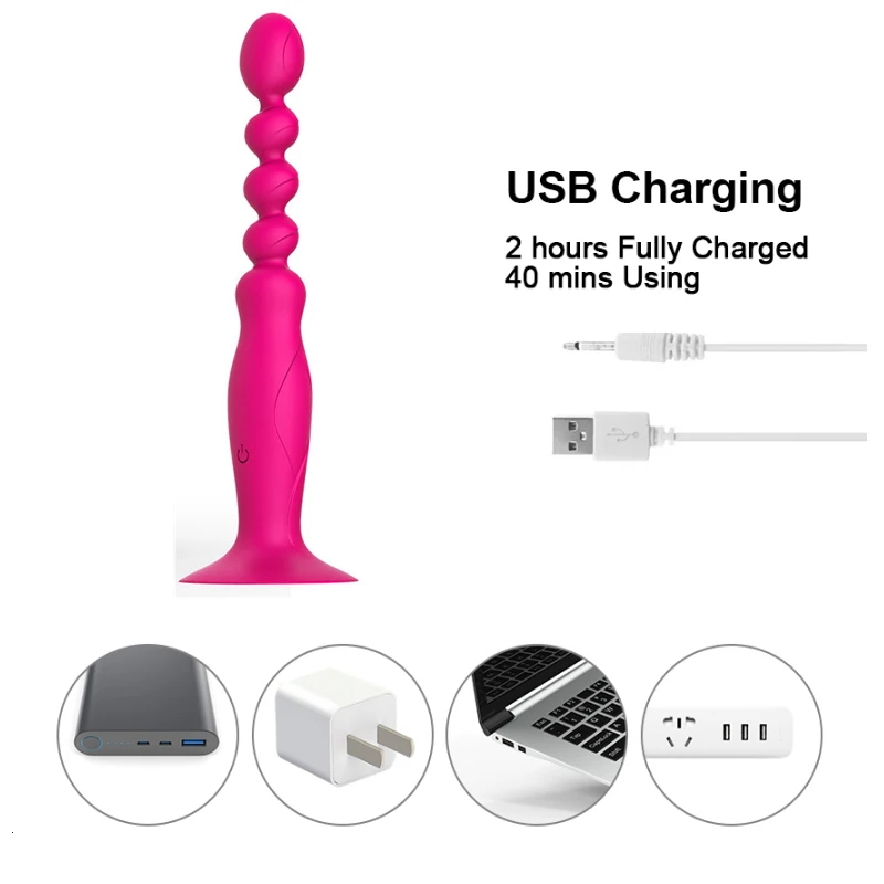 LoveTime 10 Speeds Silicone USB Charging Anal Beads