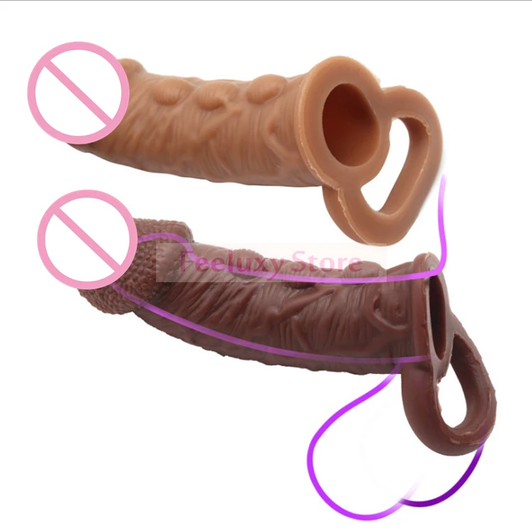 Silicone Penis Extender Condoms Male Penis Enlargement Sleeves For Couples Reusable Condom Cock Rings Sex Toys