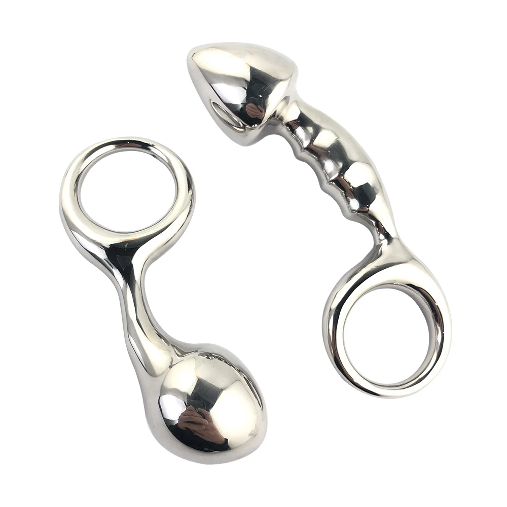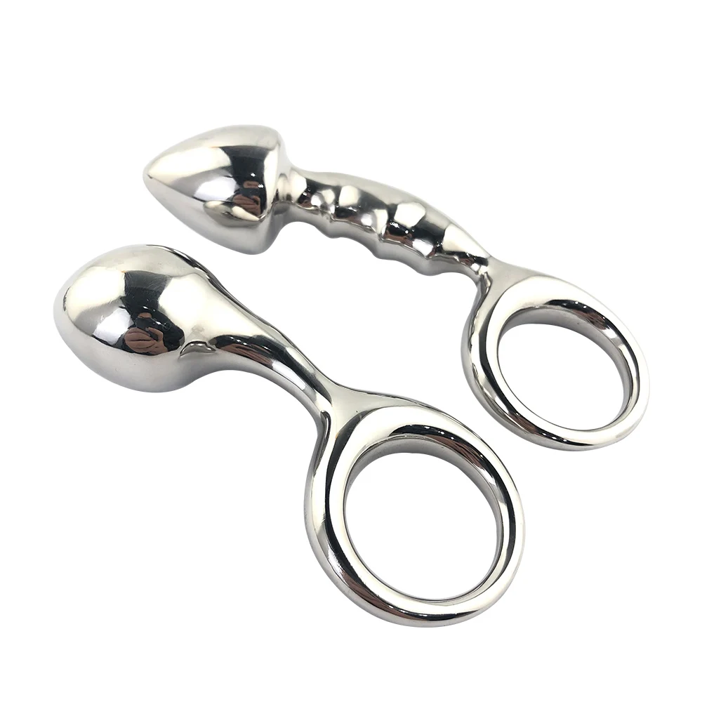 Stainless steel huge heavy small large size Metal anal beads butt plug with pull ring insert BDSM ass sex toy dildo gay couple