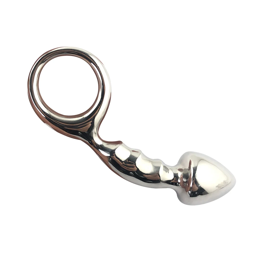 huge heavy Stainless steel Metal butt plug with pull ring